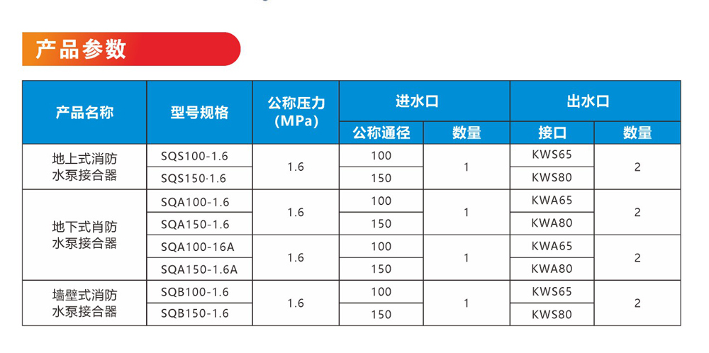消防水泵接合器是为消防机动泵配套的高层建筑供水的专用消防设备,主要解决高层建筑水压不足的问题高层建筑的消防用水,新型消防水泵结合器则是安装在室外的消防设备一般安装在工厂、仓库、码头、货场、高楼大厦公共场所等人口稠密地区的灭火需要。