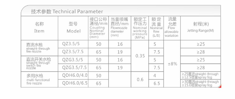 消防直流水枪是用来射水的灭火工具,用其与消防水带连接会喷射密集充实的水流。具有射程远、水流量大等优点。它由管牙接口、枪体和喷嘴等主要零部件组成。直流开关水枪,是直流水枪增加球阀开关等部件组成可以通过开关控制水流。多用水枪,是我司开发的新产品,是集直流、喷雾、启闭三种功能为一体的多用水枪,能满足客户多种用途的需求。
