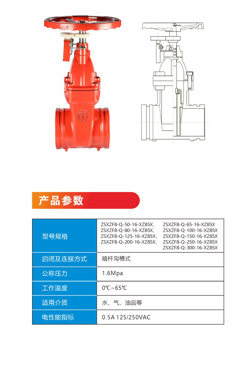 ZSXZF8-Q-100-16-XZ85X沟槽式消防信号闸阀根据GB51356-2018标准而设计