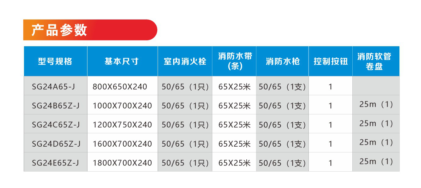 SG系列室内消火栓箱是根据GB14561-2003标准进行设计制造,它是高层建筑不可缺少的室内消防设备,配套齐全,有室内消防栓、直流水枪、水带、内扣式接口、卷盘、消防按钮等配套使用。分为铁质消防栓箱和不锈钢消防栓箱及铝合金制消火栓箱三种。